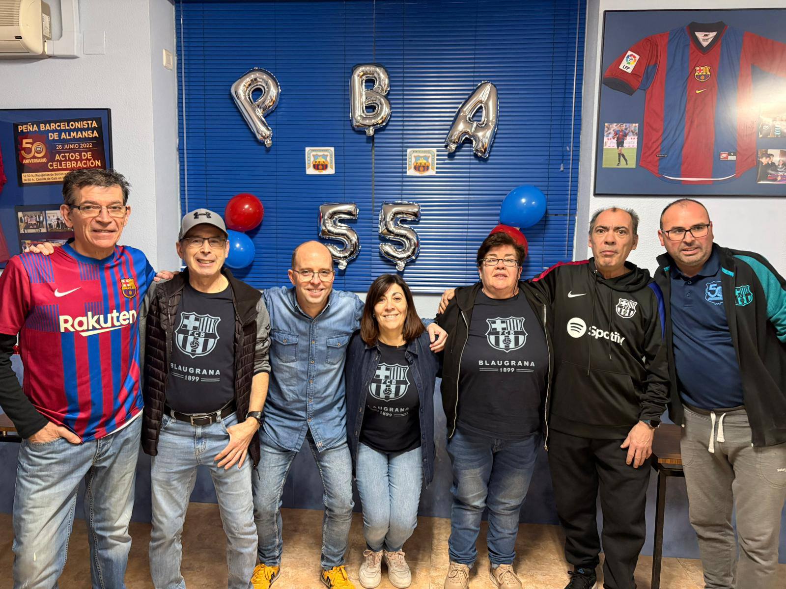 La Peña Barcelonista de Almansa (Federación de Peñas Barcelonistas de Castilla-La Mancha) va iniciar les celebracions del seu 55è aniversari amb l’organització d’un sopar a la seu de la penya. L’acte va comptar amb una nombrosa representació de membres de l’entitat, que van compartir una jornada festiva i emotiva. Cal destacar també la presència a la celebració de les penyes locals del Reial Madrid, l’Atlético de Madrid i l’Athletic Club, amb qui hi va haver un intercanvi d’obsequis en una clara mostra de concòrdia entre totes les aficions.