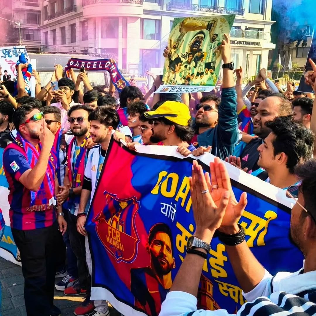 India experienced days of true blaugrana fervor during Leo Messi’s visit and his GOAT Tour. The presence of the Argentine icon brought together tens of thousands of Barça fans across the country, especially the numerous Barça penyes that had marked these dates on their calendars and were eagerly awaiting them. Specifically, Messi visited the cities of Kolkata, Hyderabad, Mumbai, and New Delhi, where he filled entire stadiums with crowds chanting his name, thrilled to see their idol in person for the first time. Among those present were the supporters’ clubs FCB Mumbai, FCB Delhi, FCB Hyderabad, FCB Kolkata, FCB Pune, FCB Kolhapur, FCB Bengaluru, and FCB Nagpur, among others.