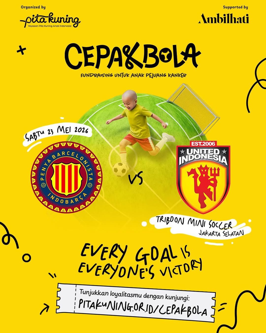 May 23 Cepak Bola 2026 by PB Indobarça 10:30 - 12:30 Triboon mini soccer Jl. Benda Bawah No.77, RT.7/RW.6, Cilandak Tim., Ps. Minggu, Kota Jakarta Selatan, Daerah Khusus Ibukota Jakarta 12560, Indonesia, Jakarta Event Details Get Directions