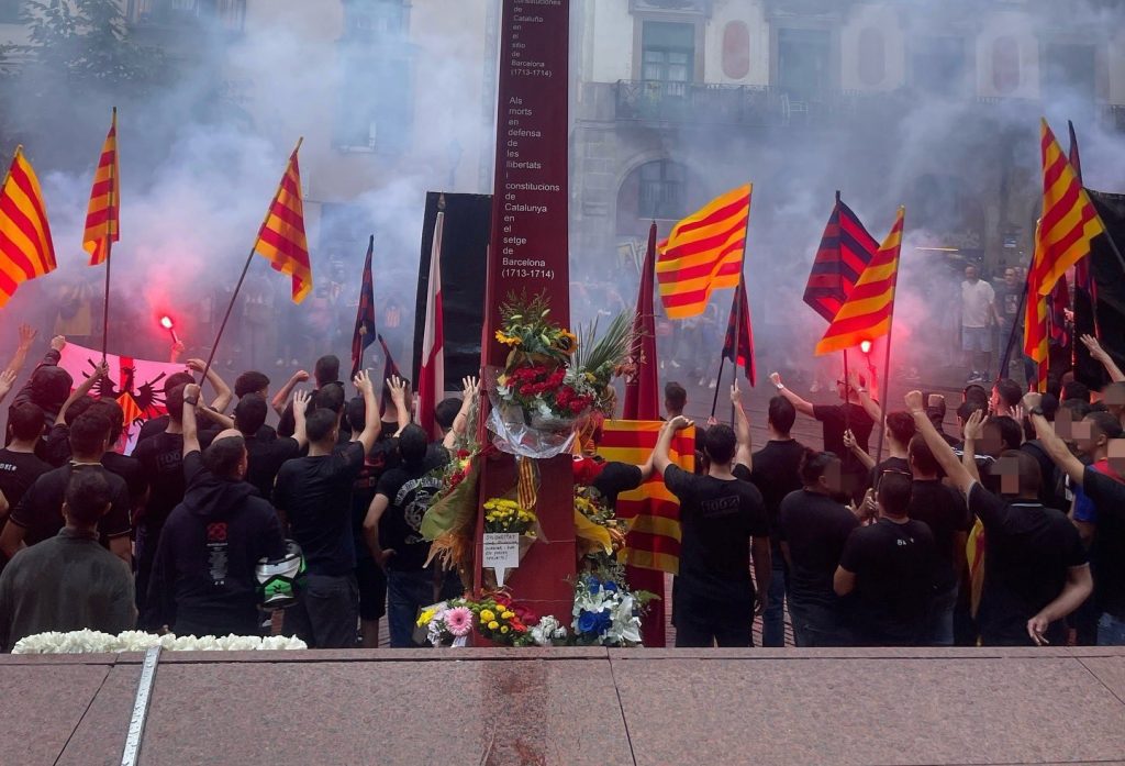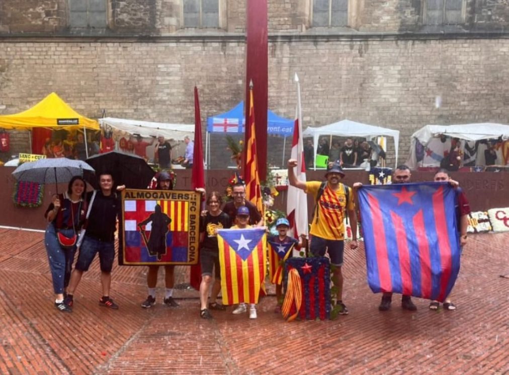 In Barcelona, the Fossar de les Moreres was once again the chosen venue for penyes such as PB Almogàvers, PB Nostra Ensenya, and PB Sang Culé. The latter had its own stand where it offered materials and information about the supporters’ club. Despite heavy rain at times, the presence of supporters at this symbolic location remained strong.