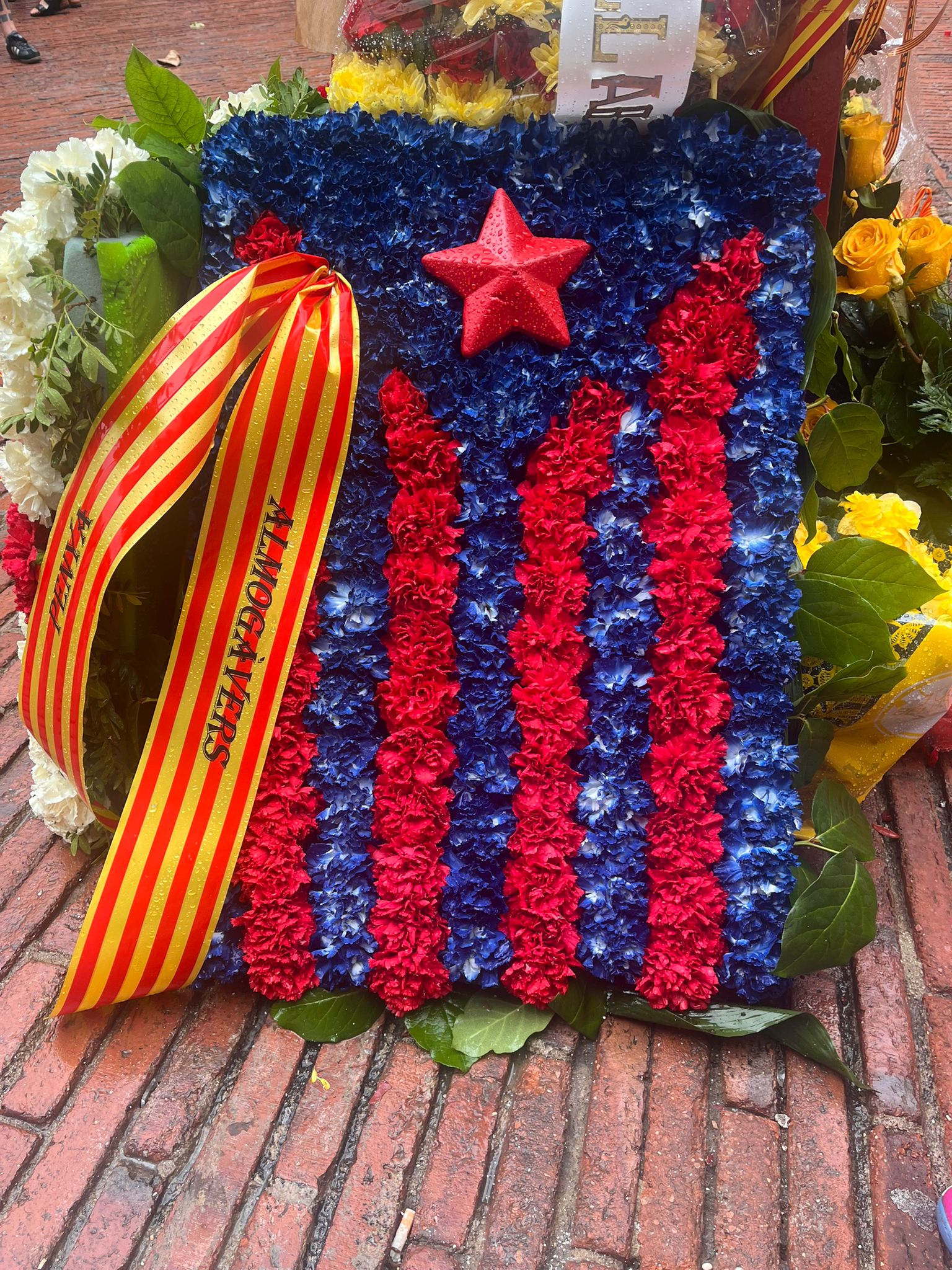 Barça penyes were present at floral offerings throughout Catalonia. This included PB Sant Adrià de Besòs (Fed. Barcelonès Est); PB Sant Andreu de la Barca, PB Castellbisbal, and PB Sant Esteve Sesrovires (Fed. Baix Llobregat); PB Sant Cugat, PB Jove Cerdanyola, PB Parets del Vallès, and PB Ripollet (Fed. Vallès); PB Santpedor and PB Sallent (Fed. Bages, Berguedà i Cerdanya); PB Plana de Vic (Fed. Osona i Ripollès); PB Almogàvers Empordà (Fed. Empordà i Catalunya Nord); PB Breda and PB Girona (Fed. Gironès, Selva, Garrotxa i Pla de l’Estany); PB Agramunt and PB Isona i Conca Dellà (Fed. Ponent Nord); PB Avi Xaxu and PB Tordera (Fed. Maresme); and PB L’Ametlla de Mar, PB El Perelló, and PB Lligallos (Fed. Terres de l’Ebre), among many others.