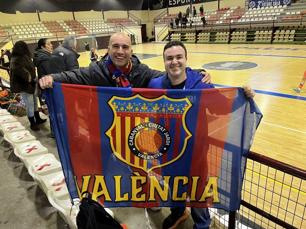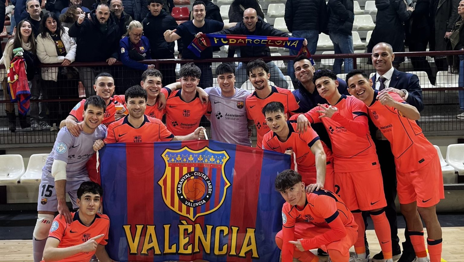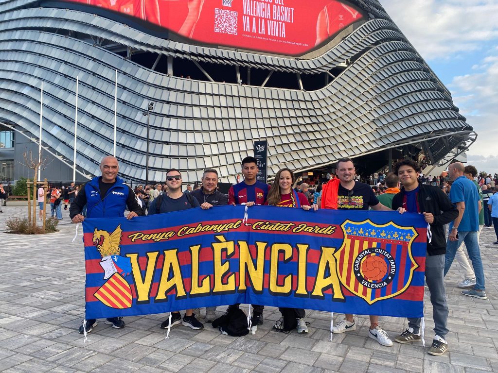 Among all the penyes that back the various Barça teams, some stand out for their unconditional loyalty. One of them is PB Cabanyal-Ciutat Jardí (Fed. València i Marina Alta), which this weekend supported Barça Atlètic futsal in their match at the Paterna Municipal Pavilion against Levante FS. This season, the Valencian supporters have also cheered the first basketball and futsal teams during their visits to Valencia, Alzira, and Peñíscola.