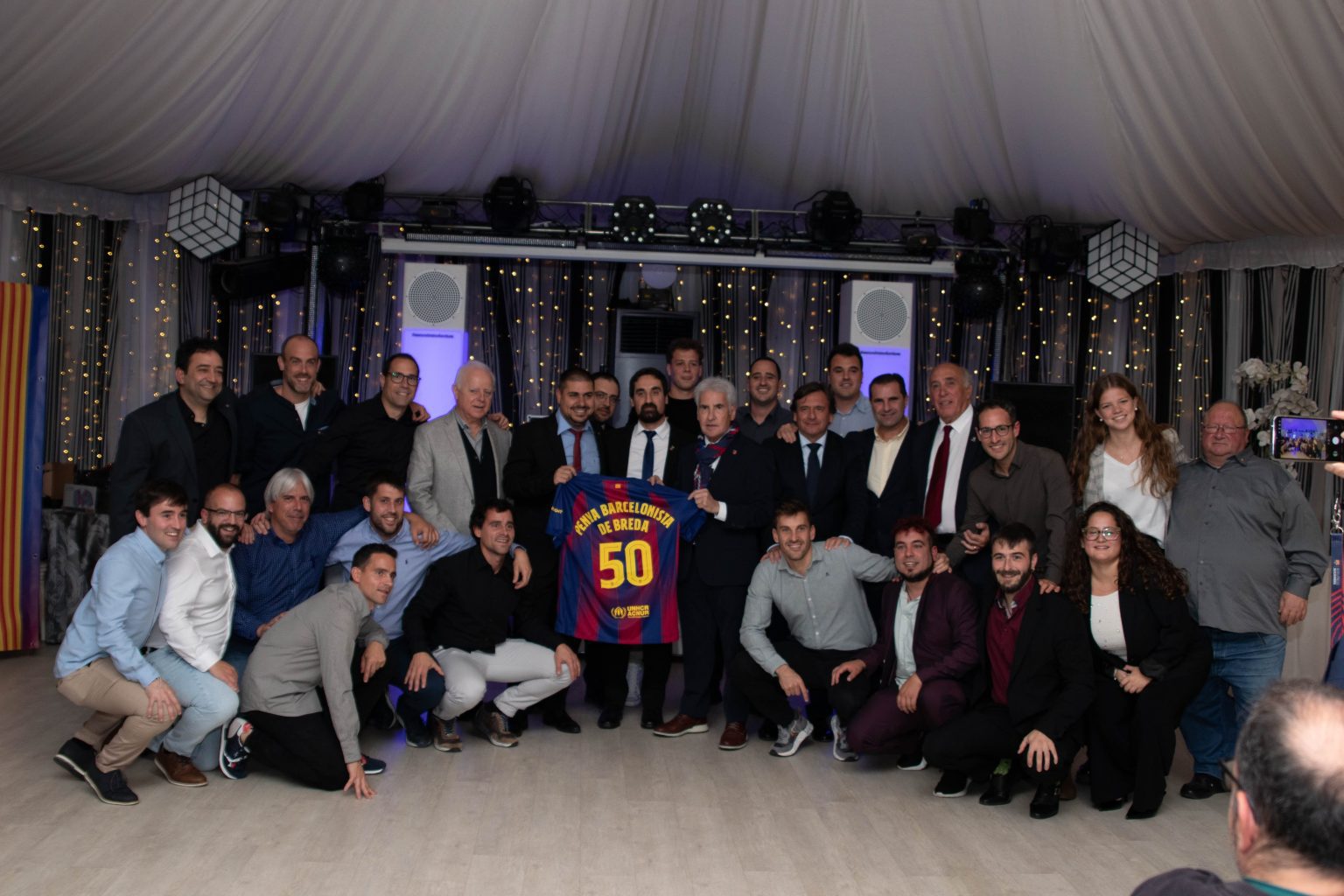 The Penya Barcelonista de Breda (Federació Gironès, La Selva, Garrotxa i Pla de l’Estany) experienced a very special evening to mark its 50th anniversary. The event featured a prominent institutional representation from FC Barcelona, led by Vice President Antonio Escudero, along with Xavier Barbany, board member of the hockey section; Juan Manuel Asensi, president of the Barça Players’ Association; and Gaby Cairo, head of Amateur Sports and sports coordinator for hockey. Also in attendance were Quim Vall-llosera, president of the Federació de Penyes del Gironès, La Selva, Garrotxa i Pla de l’Estany; Josep Oliva, delegate of the FC Barcelona Penyes Advisory Council in the region; and Marc Pujol, president of PB Breda.
