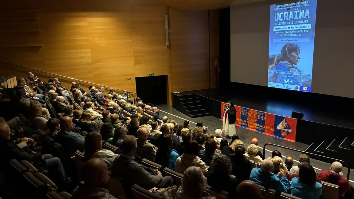 The Penya Barcelonista Vicenç Piera de la Ràpita (Terres de l’Ebre Federation) organized the screening of the documentary “Ukraine, resistance and hope” , starring Sister Lucía Caram . The stage was the Sixto Mir Auditorium in La Ràpita , and the audience response was excellent, as the space was filled with 250 people who followed the documentary with great interest and attention. The great ovation once the screening ended highlights the impact generated by this testimony created by Sister Lucía Caram, who intervened to explain her experience firsthand to all attendees.