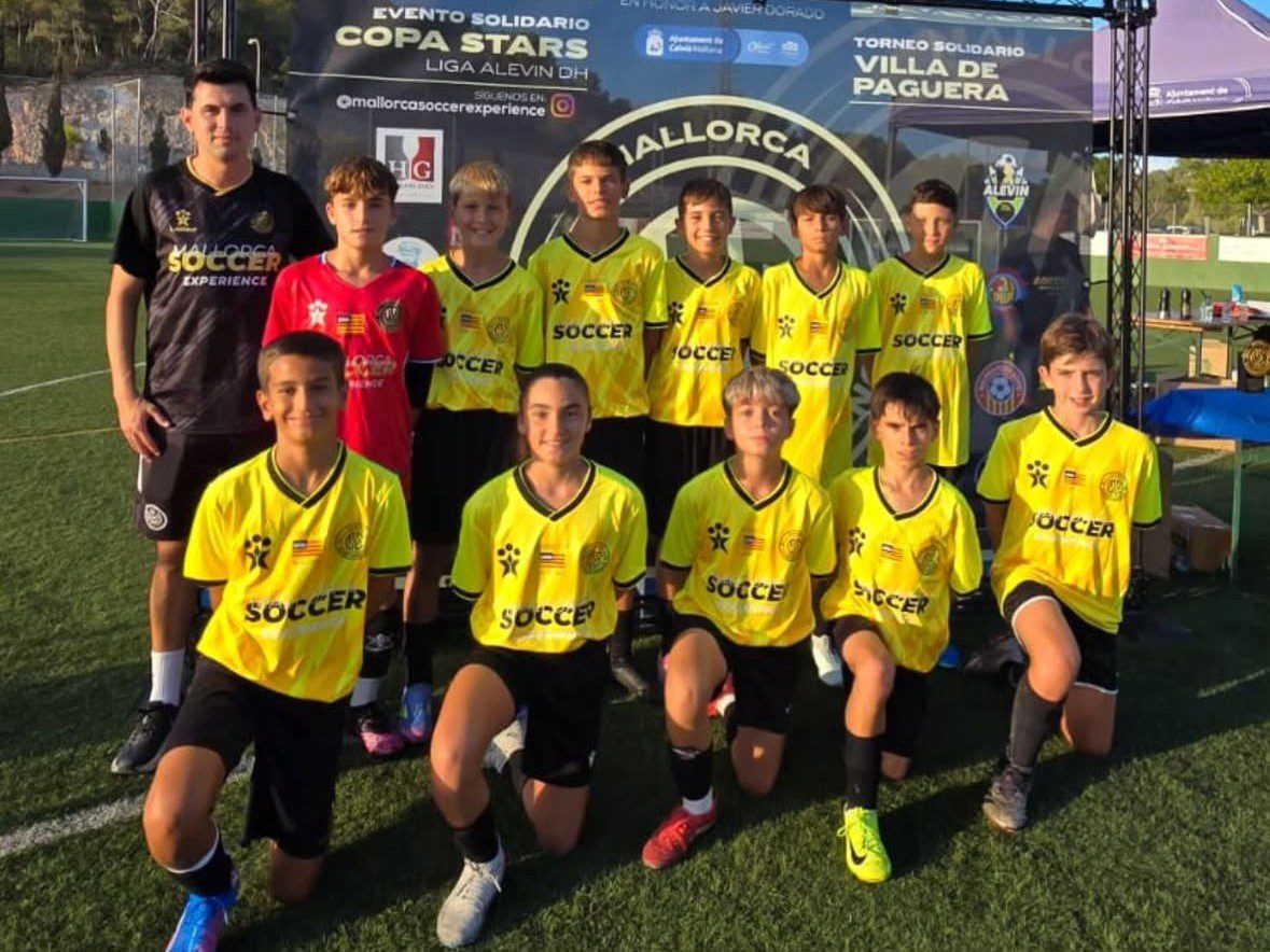 A continuación, el mismo escenario del Campo Municipal Pas de ses Llebres albergó la 1ª Copa Stars de Alevín DH, organizada por Mallorca Soccer Experience. Esta iniciativa cuenta con la colaboración de la PB Peguera-Calvià y nace como un homenaje al exjugador Javier Dorado, muy ligado a la isla de Mallorca y a su fútbol base, que falleció el año pasado. La Copa reunió a 4 equipos, 4 entrenadores y 45 jóvenes promesas del fútbol base en una auténtica fiesta deportiva, que además contó con un gran ambiente en las gradas y mucha emoción.