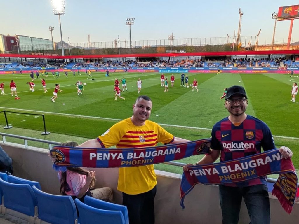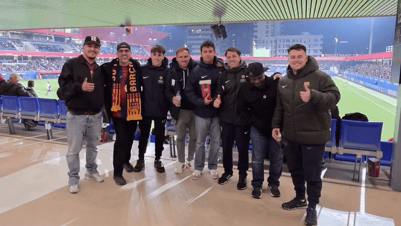 Los peñistas norteamericanos celebraron una primera fiesta de bienvenida el viernes, para después iniciar dos días cargados de actividades y también de partidos. Los integrantes del USA Penyes Barça Tour asistieron al partido del Barça femenino contra el Athletic Club en el Estadi Johan Cruyff; al Barça-Rayo del primer equipo masculino disputado en el Spotify Camp Nou; y algunos de ellos también al clásico de baloncesto entre Barça y Real Madrid en el Palau Blaugrana.