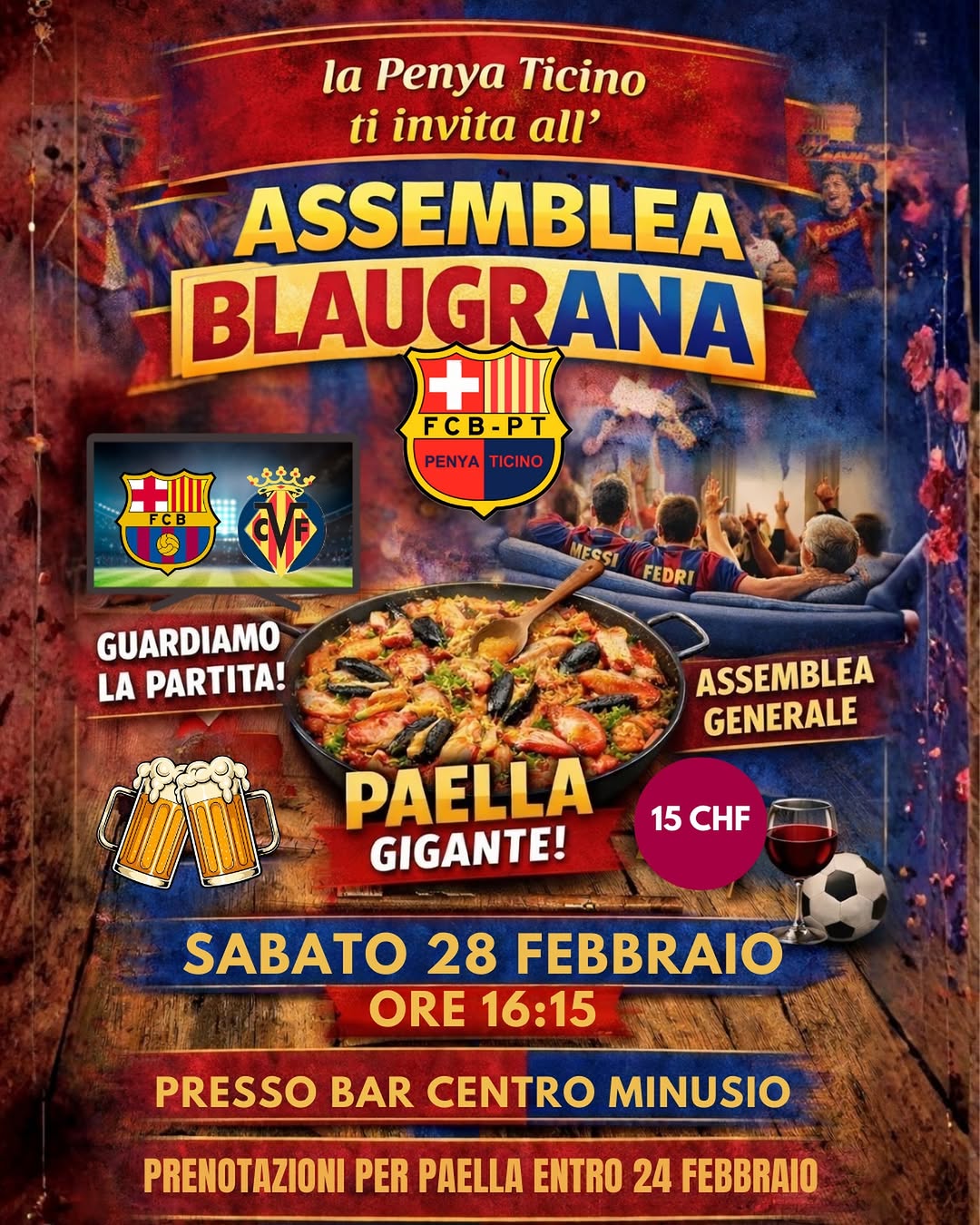 Asamblea Blaugrana en la FC Barcelona Penya Ticino Feb 28 Asamblea Blaugrana en la FC Barcelona Penya Ticino 16:00 - 18:30