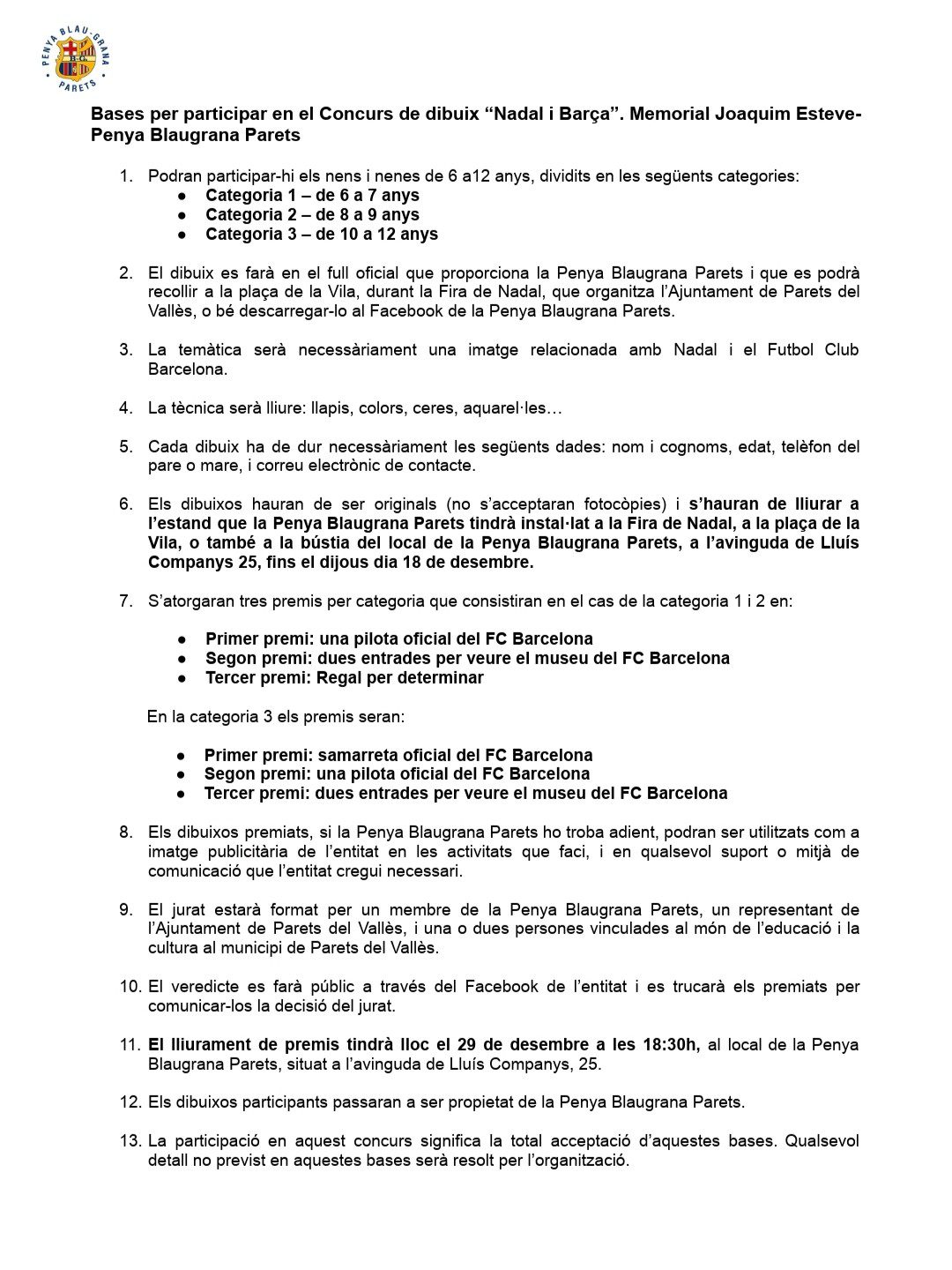 Concurso de dibujo «Nadal i Barça» -Memorial Joaquim Esteve- de la PB Parets
