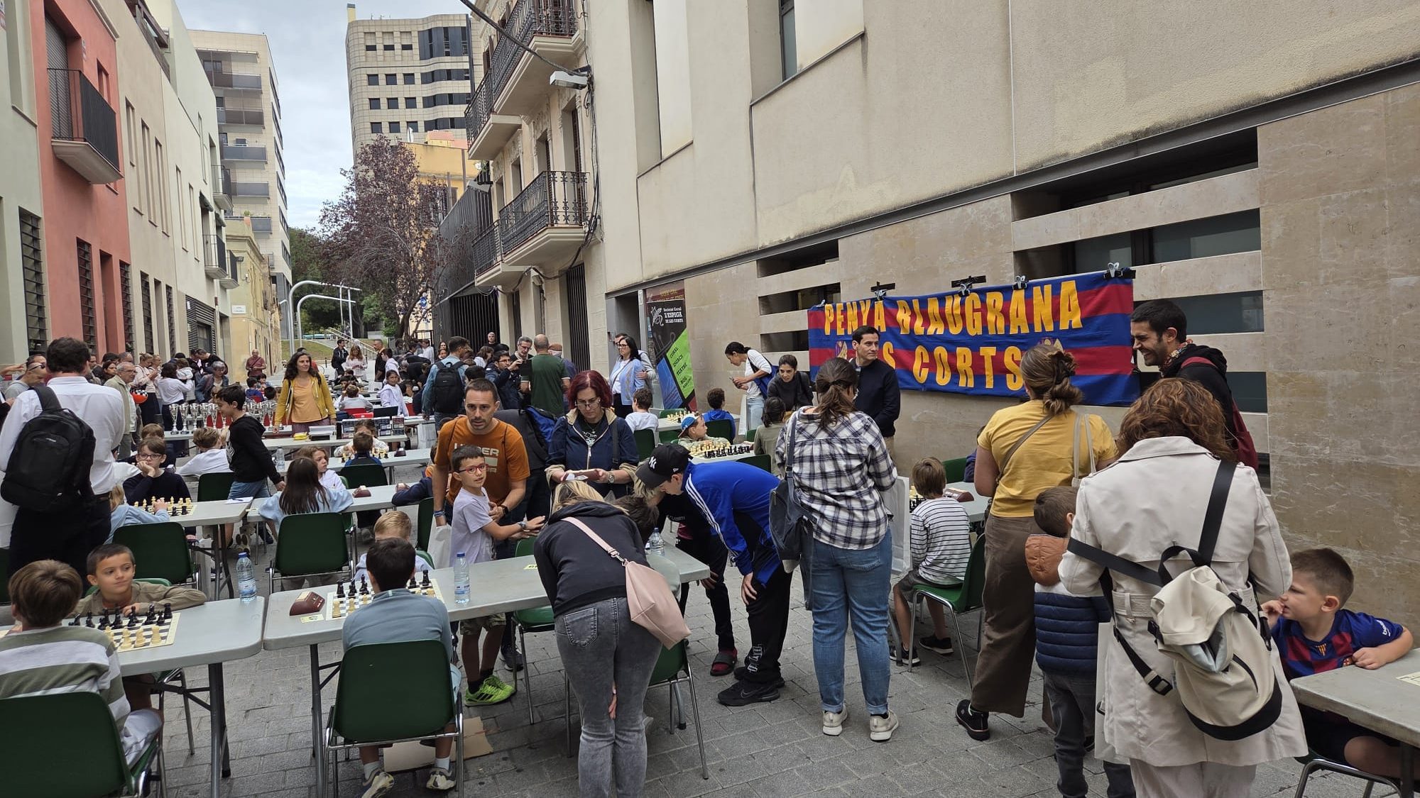 La Penya Blaugrana de Les Corts (Federació de Penyes del Barcelonès Oest) volvió a participar activamente en una nueva edición de la Fiesta Mayor de Les Corts con la celebración de su V Open Infantil de Ajedrez. El evento, uno de los más esperados por los más jóvenes del barrio, se celebró en la calle Joan Gamper y contó con la participación de cerca de 100 niños y niñas nacidos a partir del año 2011. El torneo se desarrolló a un ritmo muy dinámico, siguiendo el sistema suizo a 7 rondas y con partidas que se jugaron a un ritmo de 5 minutos por jugador/a y un incremento de 3 segundos por jugada. La PB Les Corts contó, un año más, con la colaboración técnica de la sección de ajedrez de la asociación L’Espiga de Les Corts.
