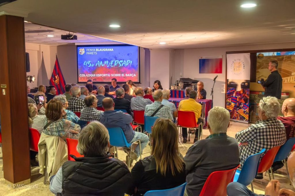 Los actos de celebración del 45º aniversario de la PB Parets comenzaron el pasado jueves con un coloquio deportivo que reunió a más de 100 personas en la sede de la peña. Participaron los periodistas Joan Poquí, Marta Ramón, Francesc Latorre, Carles Font y Mireia Germán, esta última como moderadora. Todos ellos comentaron la actualidad del FC Barcelona, tratando temas como La Masia o el papel de las secciones, y también respondieron preguntas del público. Estuvieron presentes el presidente de la PB Parets del Vallès, Joan Viñas, y el alcalde de la localidad, Francesc Juzgado.