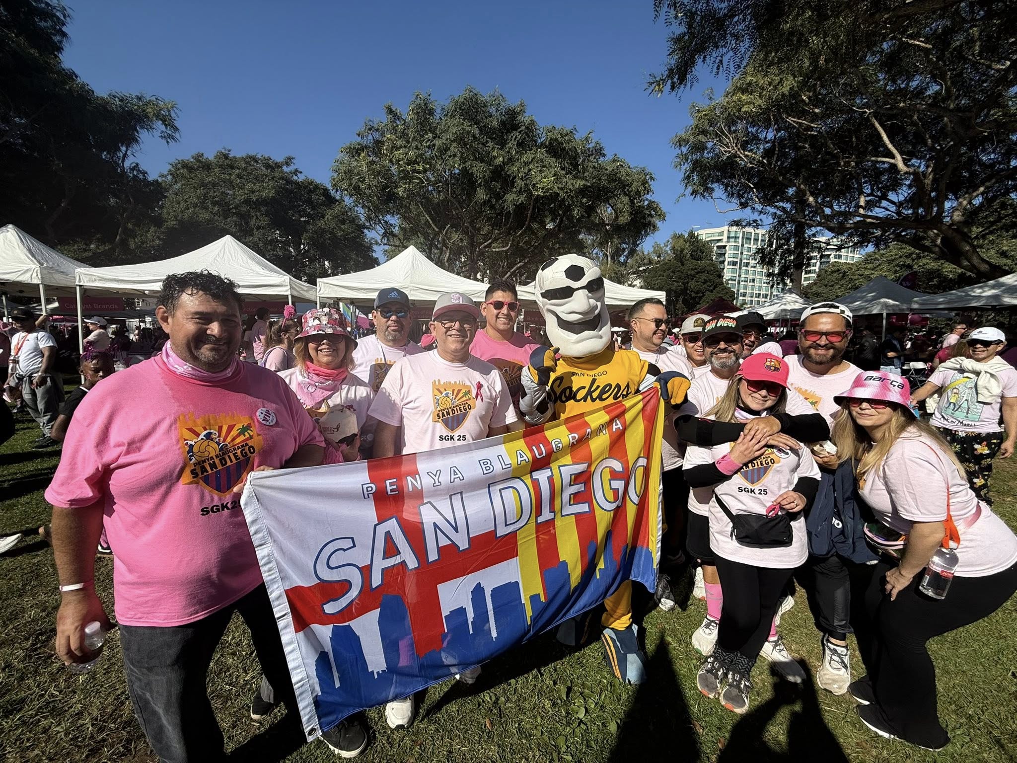 La Penya Blaugrana de San Diego (Federación Mundo) demostró una vez más su gran compromiso con la lucha contra el cáncer de mama con su participación en una nueva edición de la caminata solidaria “More Than Pink”. Esta iniciativa, organizada por la Fundación Susan G. Komen, busca concienciar sobre la lucha contra el cáncer de mama y recaudar fondos destinados a investigar la enfermedad, crear programas de salud comunitaria y apoyar a las personas afectadas. La PB San Diego, que participó en la caminata con varios peñistas y contó con un stand propio, entregó una donación de más de 4.300 dólares para esta causa solidaria.