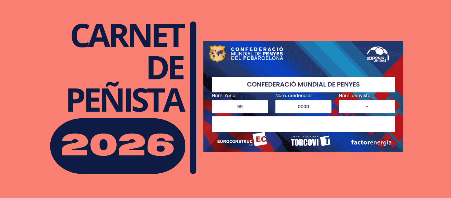 El Carnet de Peñista 2026 de la Confederación Mundial de Peñas del FC Barcelona ya está disponible en formato digital en la Sede Electrónica de la entidad . A través de esta plataforma, todas las peñas registradas pueden consultar el listado completo de carnets de su censo, descargarlos en formato PDF y enviarlos a sus peñistas . De esta forma, cada peñista puede guardar su Carnet en el móvil y tenerlo siempre a mano. Además, las personas que dispongan de Identidad Digital pueden acceder directamente a su Carnet de Peñista desde su perfil en la Sede Electrónica y descargarlo también en PDF si lo prefieren.