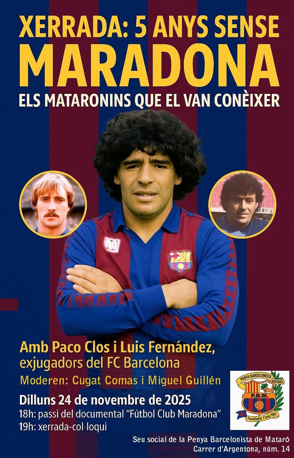 nov. 24 18:00 - 21:00 Xerrada: 5 anys sense Maradona a la PB Mataró Seu social PB Mataro Carrer d'Argentona, 14, 08302 Mataró, Barcelona, Mataró Esdeveniment Details Get Directions