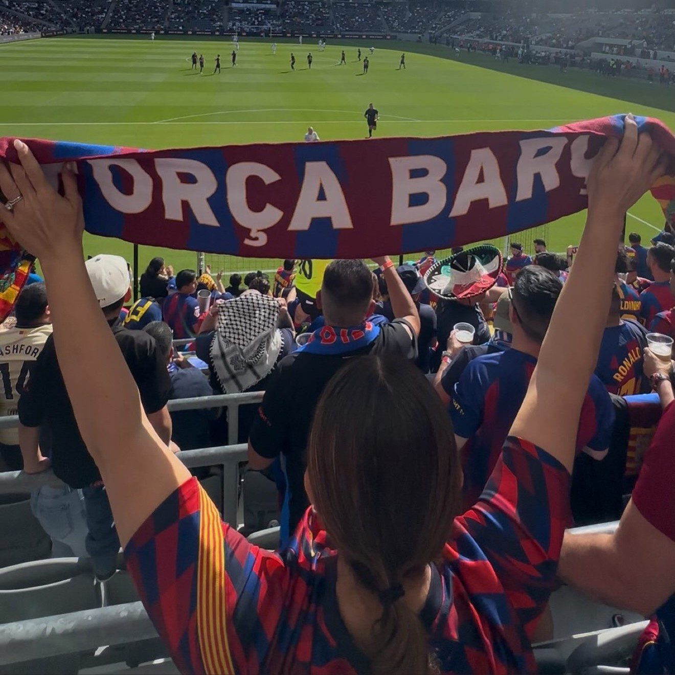 Poc abans de l’inici del clàssic de llegendes, les penyes van organitzar un petit corteo durant el seu desplaçament fins al BMO Stadium de Los Angeles. Durant uns instants, els càntics i els colors barcelonistes van envair els carrers de la ciutat californiana gràcies a l’energia de totes les penyes presents. Dins de l’estadi, els aficionats van tenyir les grades de blaugrana i van animar els Barça Legends de principi a fi, amb un resultat d’empat final (1-1).