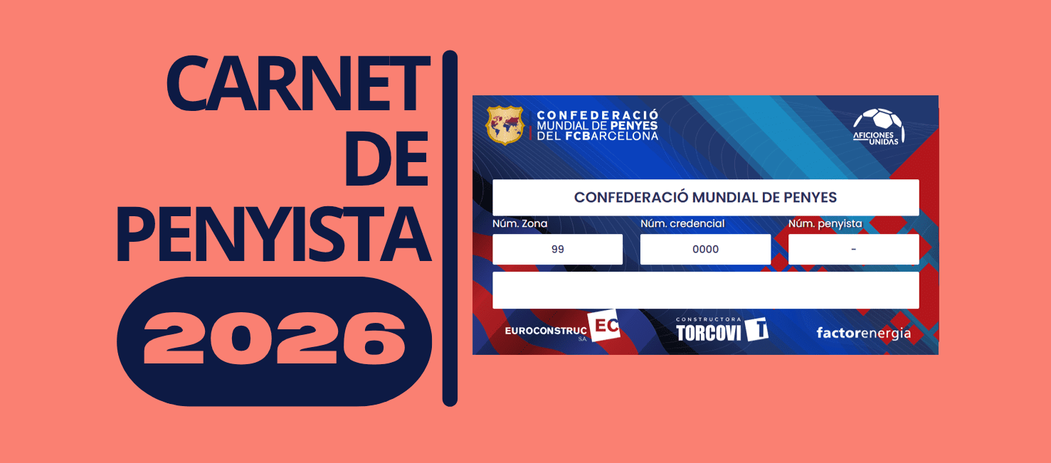 El Carnet de Penyista 2026 de la Confederació Mundial de Penyes del FC Barcelona ja està disponible en format digital a la Seu Electrònica de l’entitat. A través d’aquesta plataforma, totes les penyes registrades poden consultar el llistat complet de carnets del seu cens, descarregar-los en format PDF i enviar-los als seus penyistes. D’aquesta manera, cada penyista pot guardar el seu Carnet al mòbil i tenir-lo sempre a mà. A més, les persones que disposin d’Identitat Digital poden accedir directament al seu Carnet de Penyista des del seu perfil a la Seu Electrònica i descarregar-lo també en PDF si ho prefereixen.